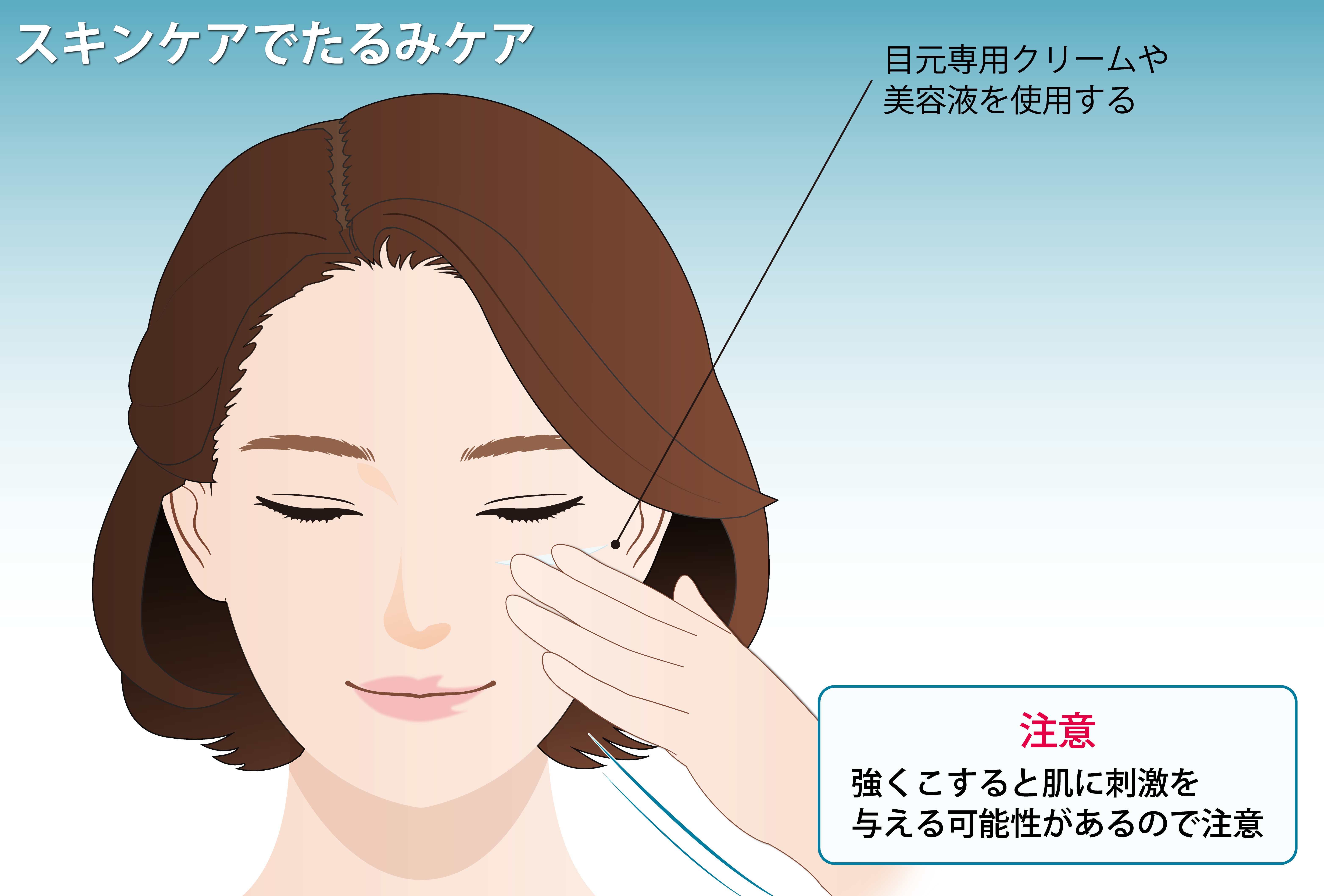 ハリと弾力のある肌を保つためには、日々のスキンケアも重要です。目もとは皮膚が薄くデリケートなため、目もと専用のクリームや美容液を取り入れるとよいでしょう。