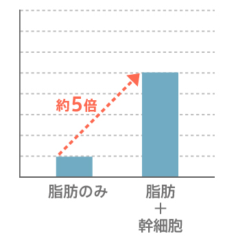 幹細胞の効果は、脂肪のみを注入した場合と比較して、注入121日後には約5倍も高いことが研究でわかっています(デンマークCopenhagen大学病院のStig-Frederik Trojahn Kolle氏らが、Lancet誌2013年9月28日号で発表)。