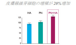 ポリヌクレオチド、非架橋ヒアルロン酸のみが配合された肌育製剤と比べ、皮膚再生にきわめて重要な成分「皮膚繊維芽細胞」の増殖や活性が20%促進されていることが確認されています。