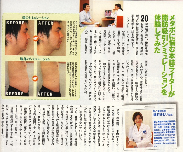 SPA(7/10号)の『メンズ美容整形 きみたちのその後』特集で聖心美容外科のシミュレーションシステムを使用した脂肪吸引のBefore&Afterが紹介されています。