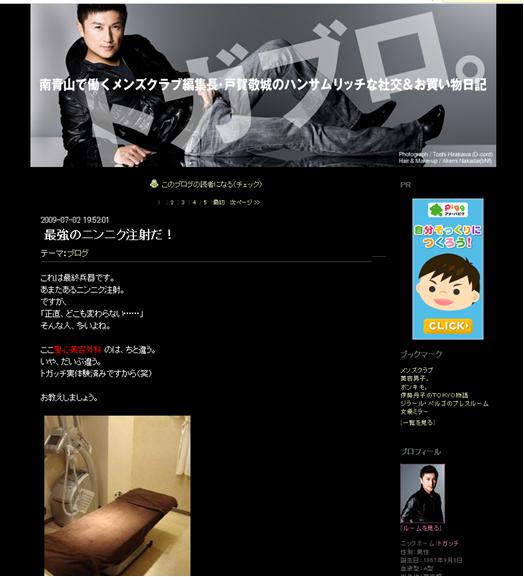 MEN'S CLUBの戸賀編集長が当院でニンニク注射(エディターズブレンド)を体験され、ご自身のブログ『トガブロ』にて、ご紹介いただきました。
