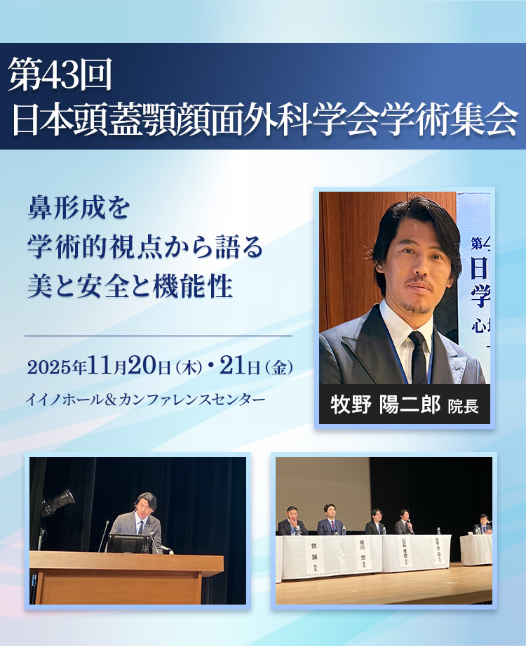 2025年11月20日(木)、21日(金)の二日間で開催された「第43回 日本頭蓋顎顔面外科学会学術集会」にて、当院の牧野 陽二郎院長(銀座院)が発表を行いました。