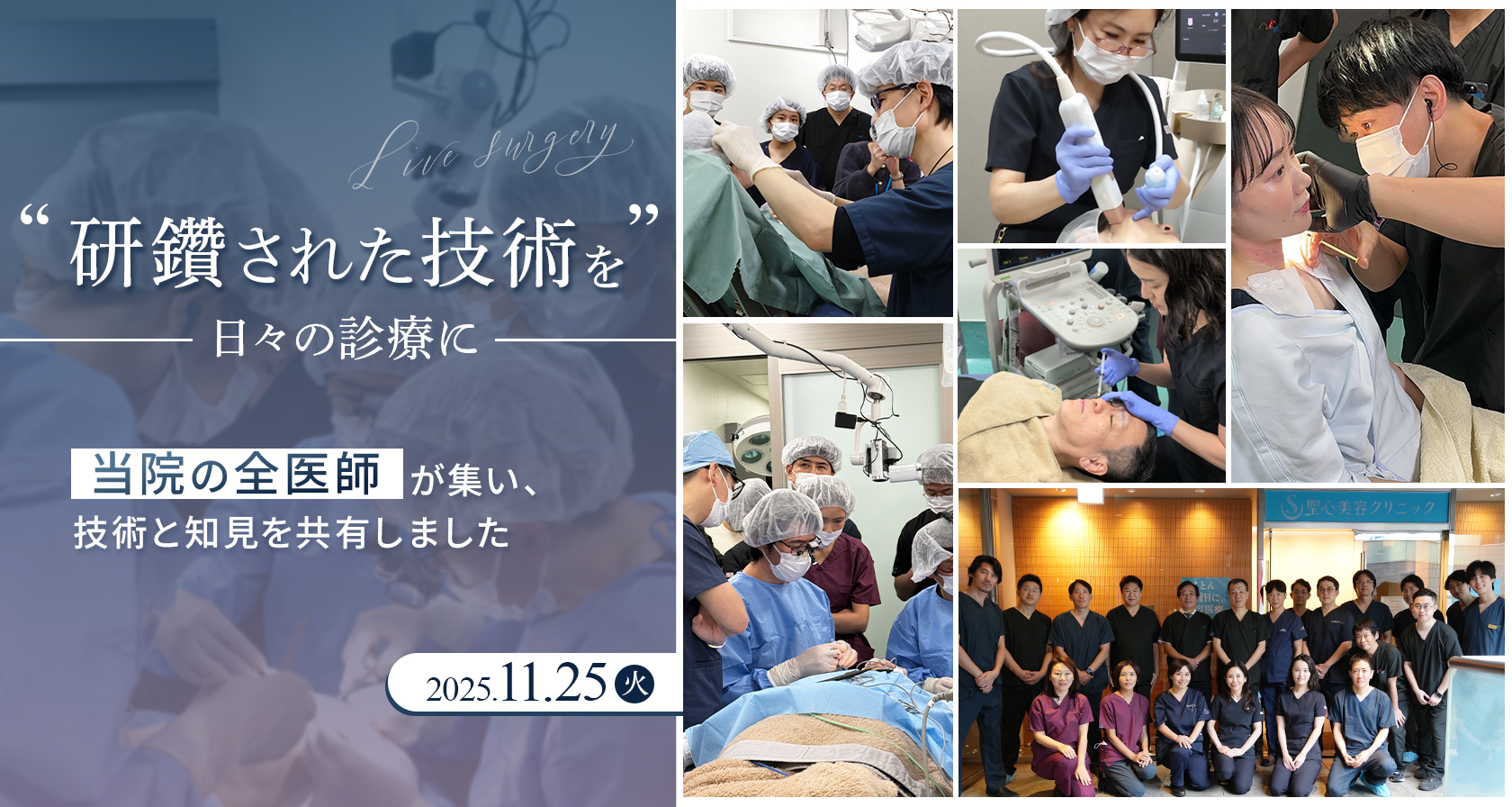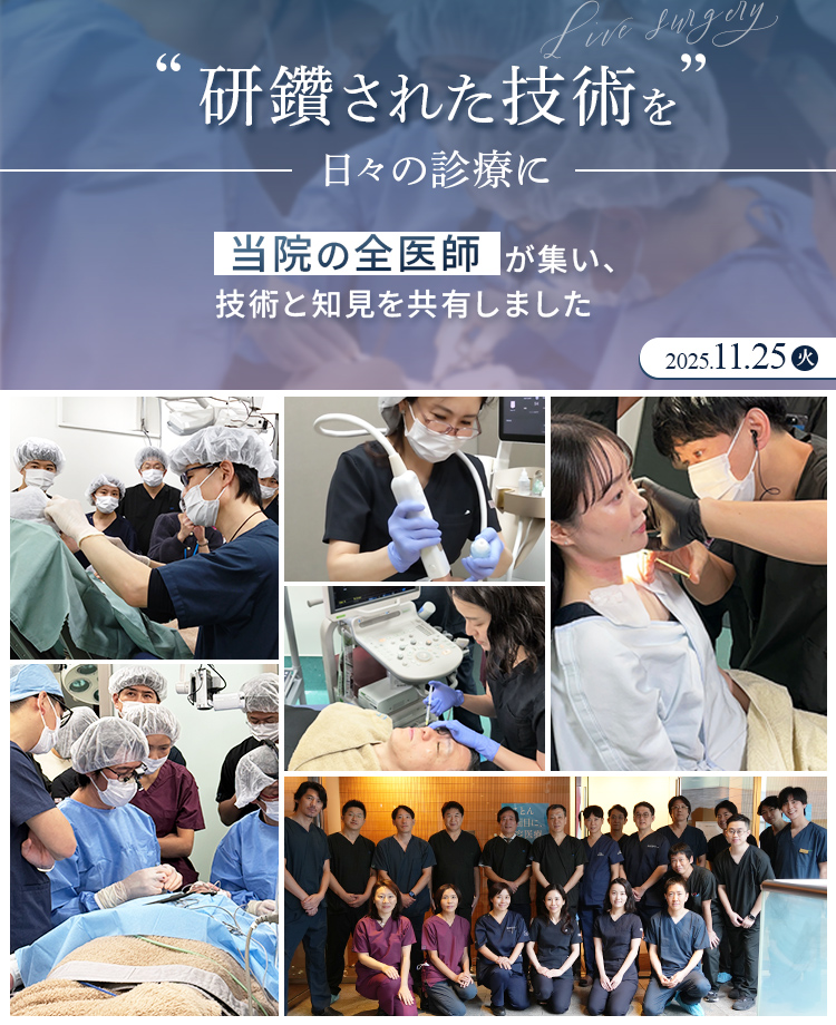 2025年11月25日(火)、聖心美容クリニック六本木院にて、当院の全医師が集結し、ライブサージェリー(手術手技を学ぶための、リアルタイムの公開手術)を通じて技術交流を行いました。