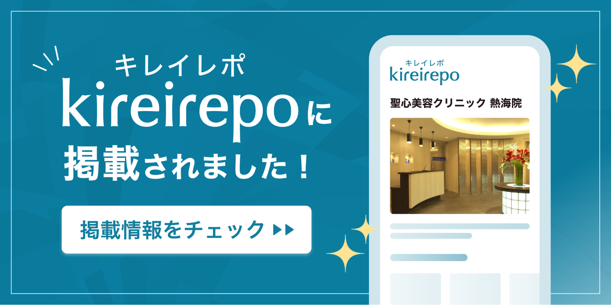この度、聖心美容クリニック 熱海院が美容医療(自由診療・審美歯科)のプラットフォーム「キレイレポ」に掲載されました。