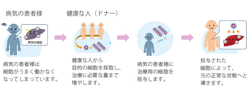 間葉系幹細胞※などを投与して、異常な細胞に働きかけて正常に戻す